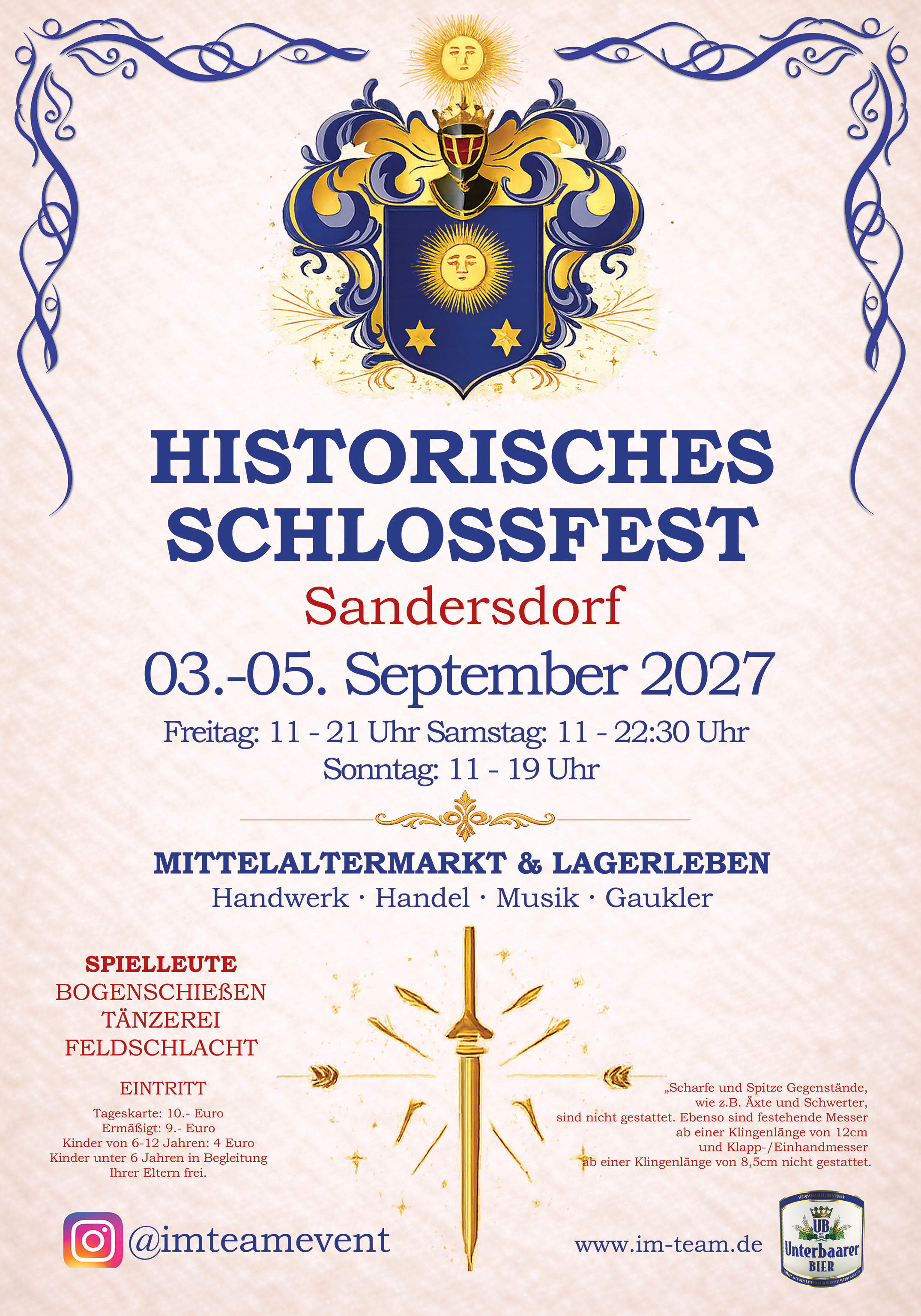 Grünauer Rittertage Jagdschloss Grünau 14./15./16./17. Mai 2026 Historische Tage Schloss Scherneck 23./24./25. Mai 2026